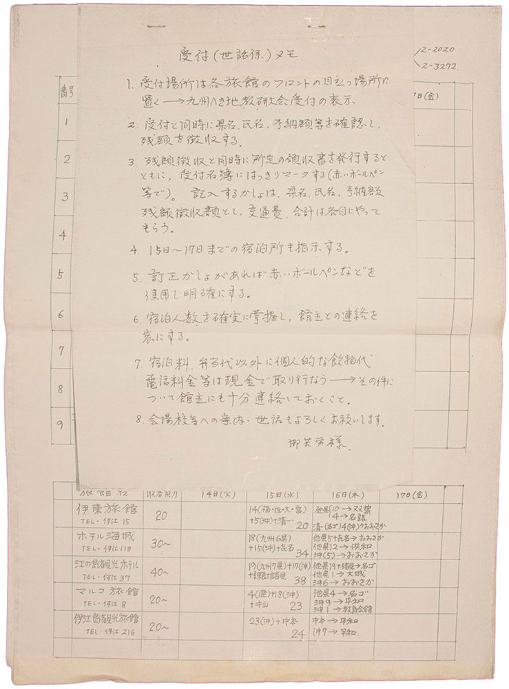 > 受付(世話係)メモ他