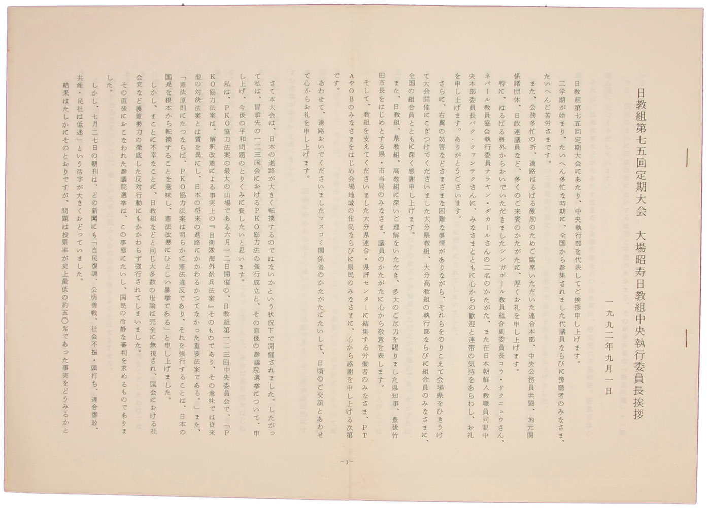 > 日教組第七五回定期大会大場昭寿日教組中央執行委員長挨拶