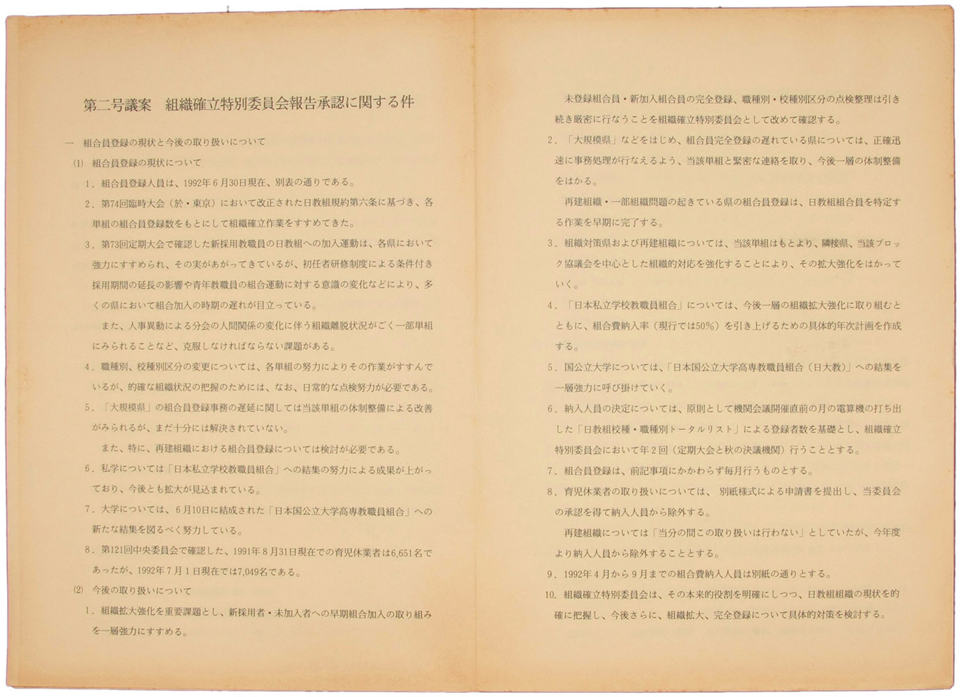 > 第二号議案 組織確率特別委員会報告承認に関する件