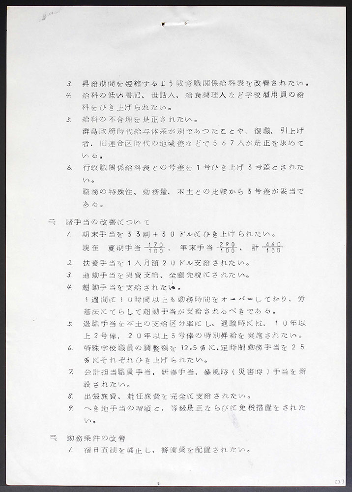 > 教職員の給与・勤務条件等の改善について