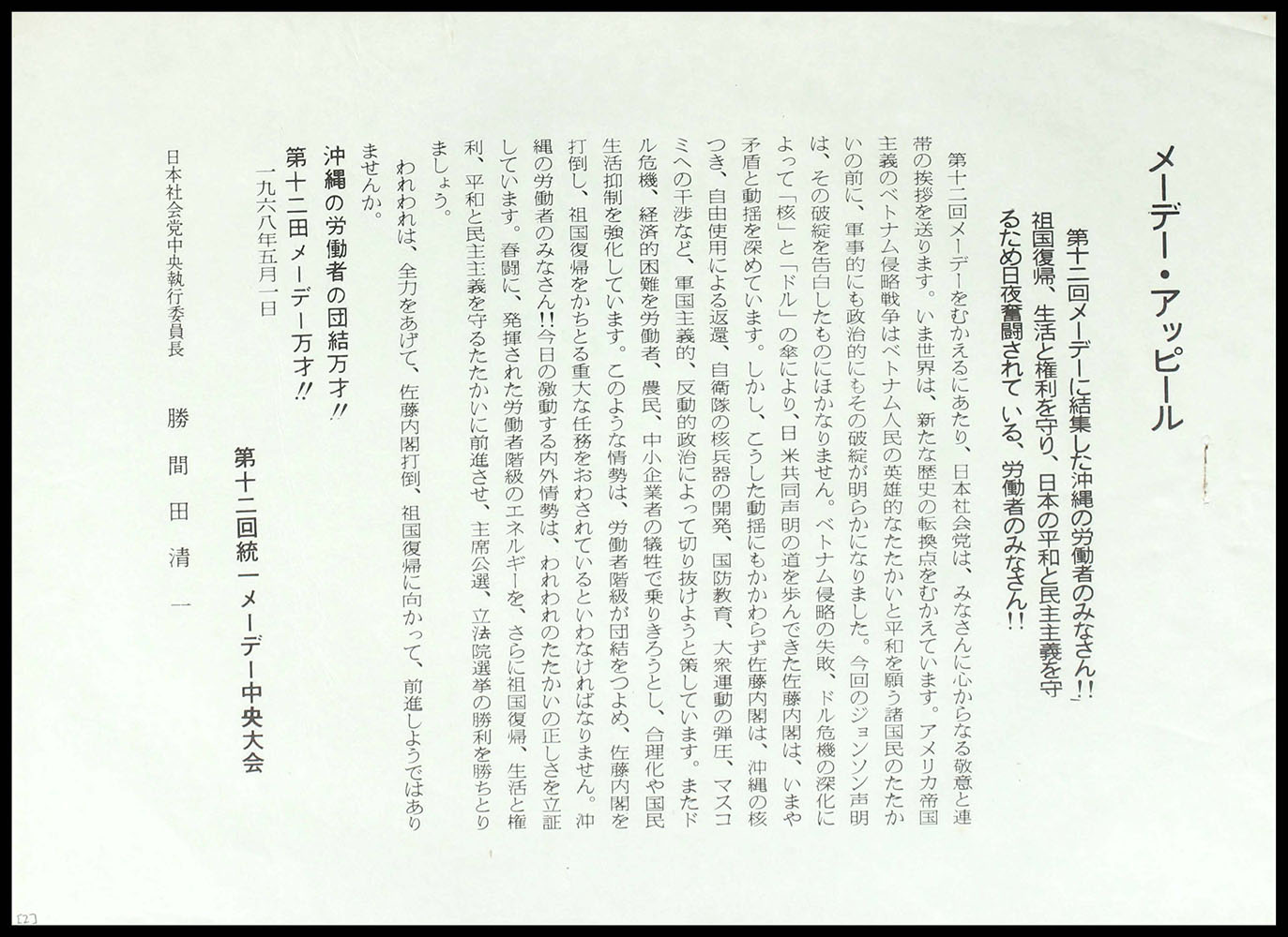 第十二回 統一メーデー中央大会