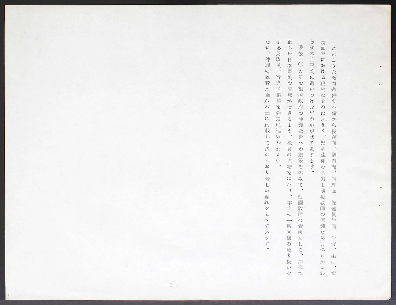 > 一九六五年三月十七日 沖縄経済視察団に対する請願書