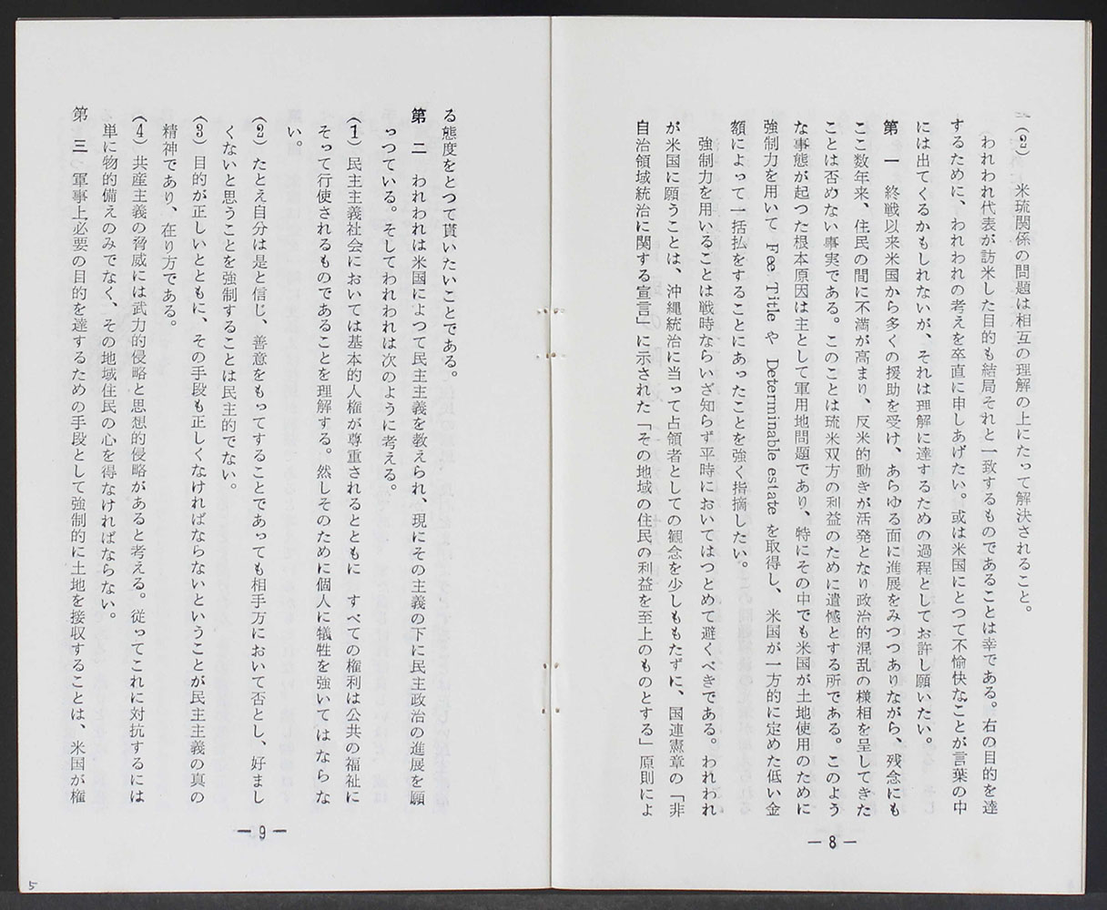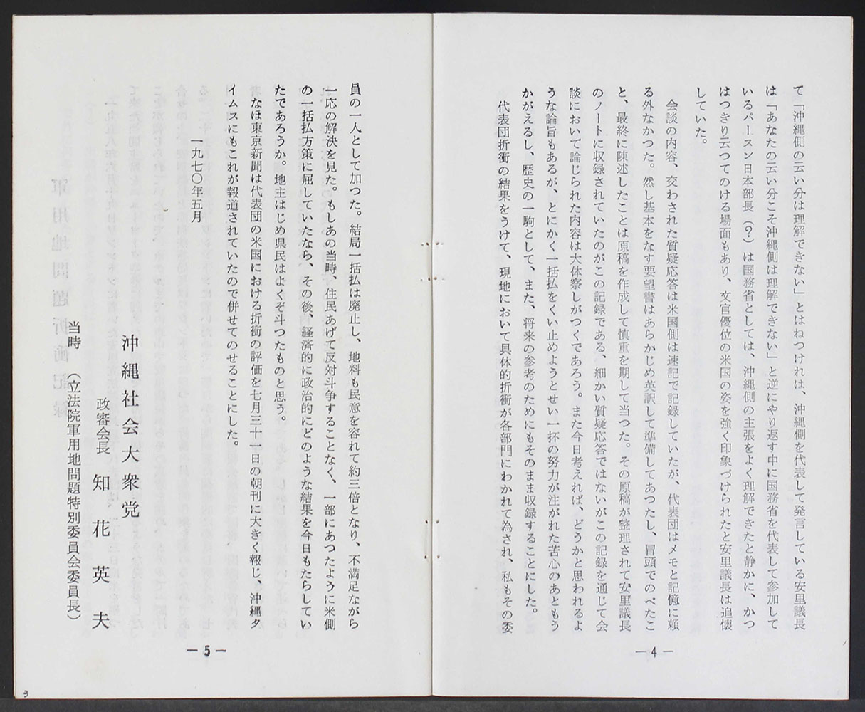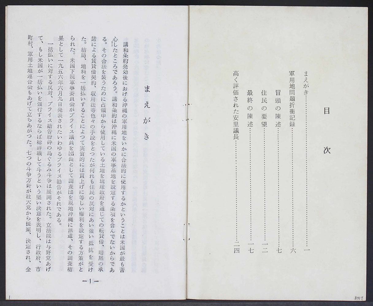 > 軍用地問題(一括払廃止)対米折衝記録