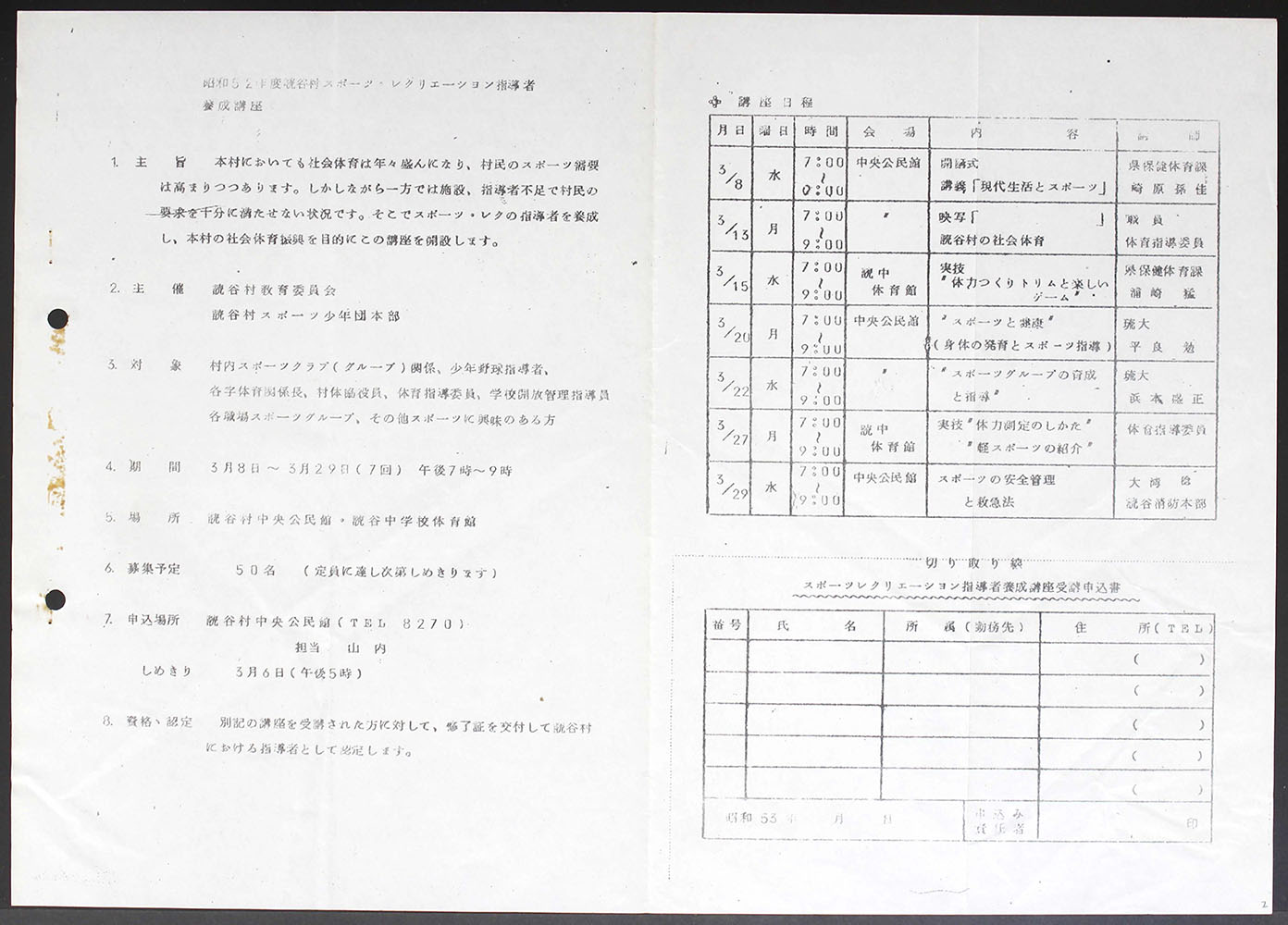 > 昭和52年度 スポーツ、レクリエーション指導者養成講座