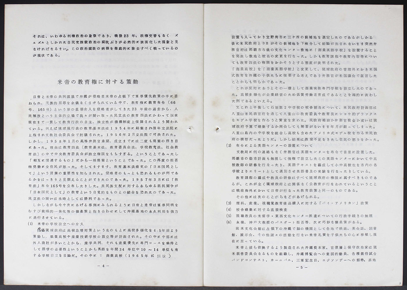 読谷村教育委員会が保有する沖縄戦後教育史・