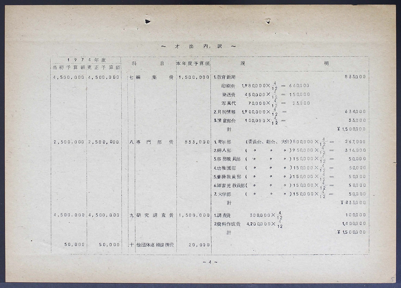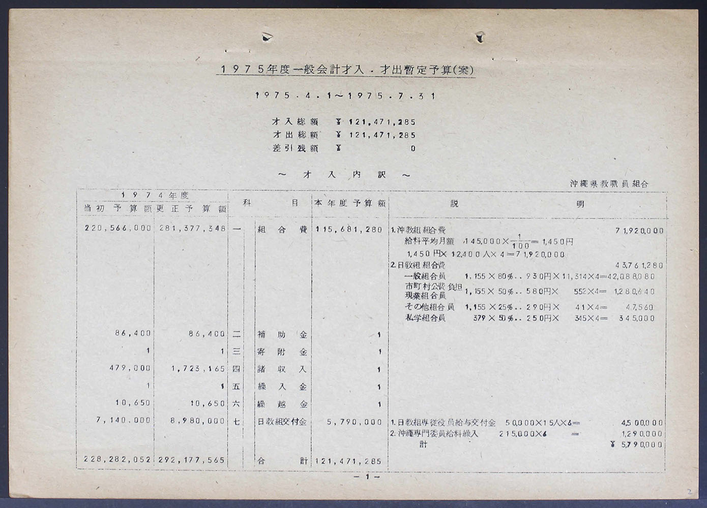 1975年度暫定予算(案)
