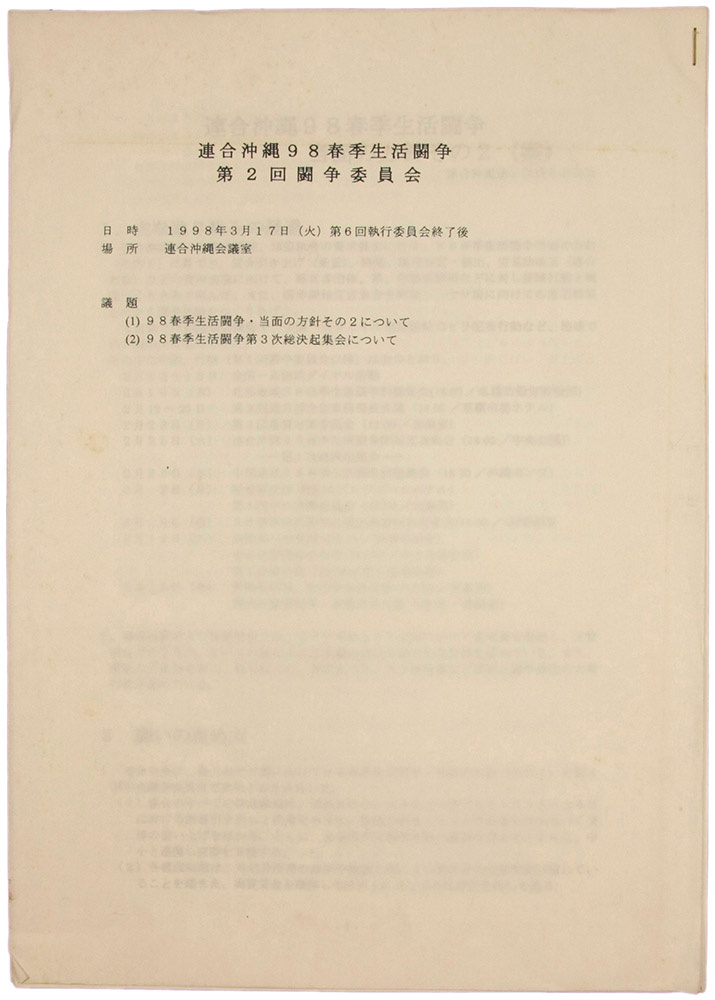 > 連合沖縄98春季生活闘争 第2回闘争委員会