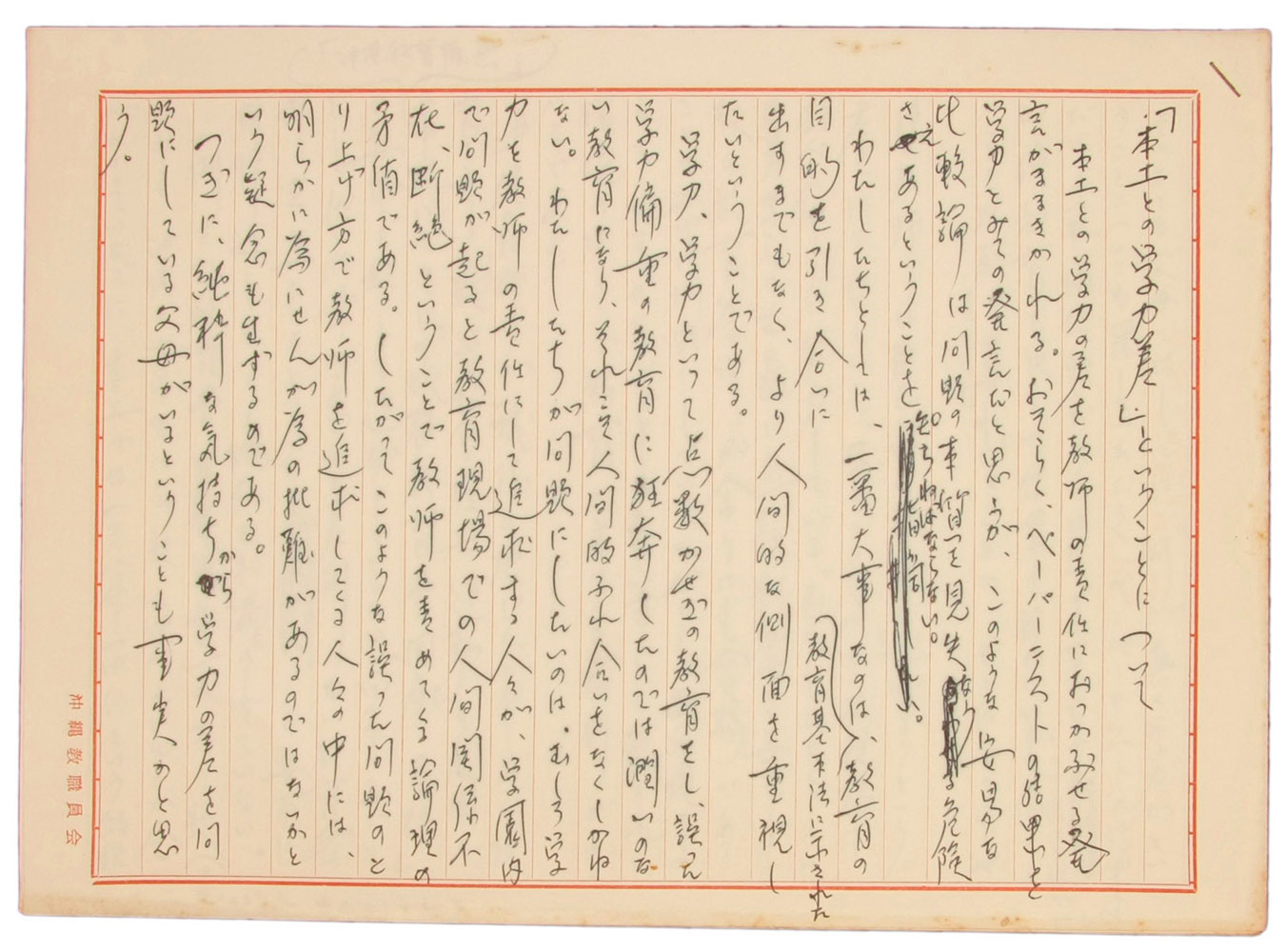 「本土との学力差」ということについて