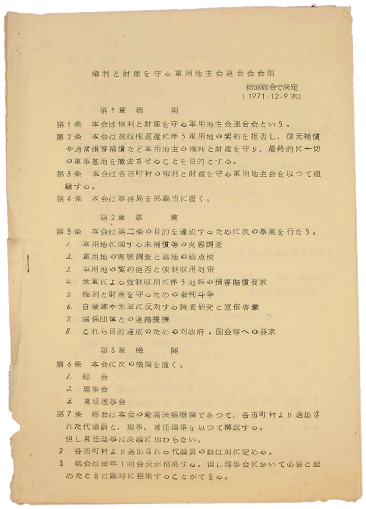 > 権利と財産を守る軍用地主会連合会会則