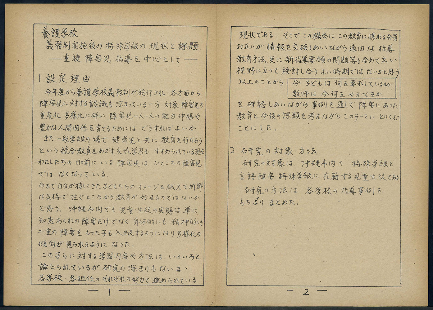 > 養護学校義務制実施後の特殊学級の現状と課題