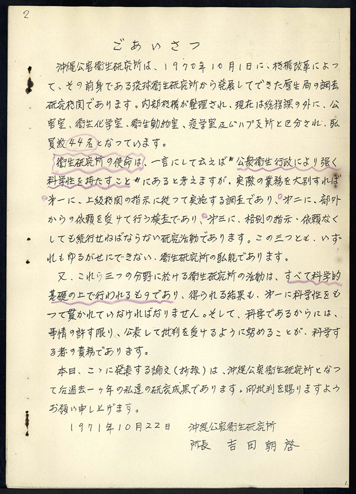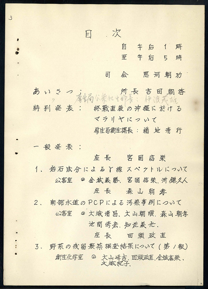 > 第1回 沖縄公害衛生研究所発表会 1971年10月22日