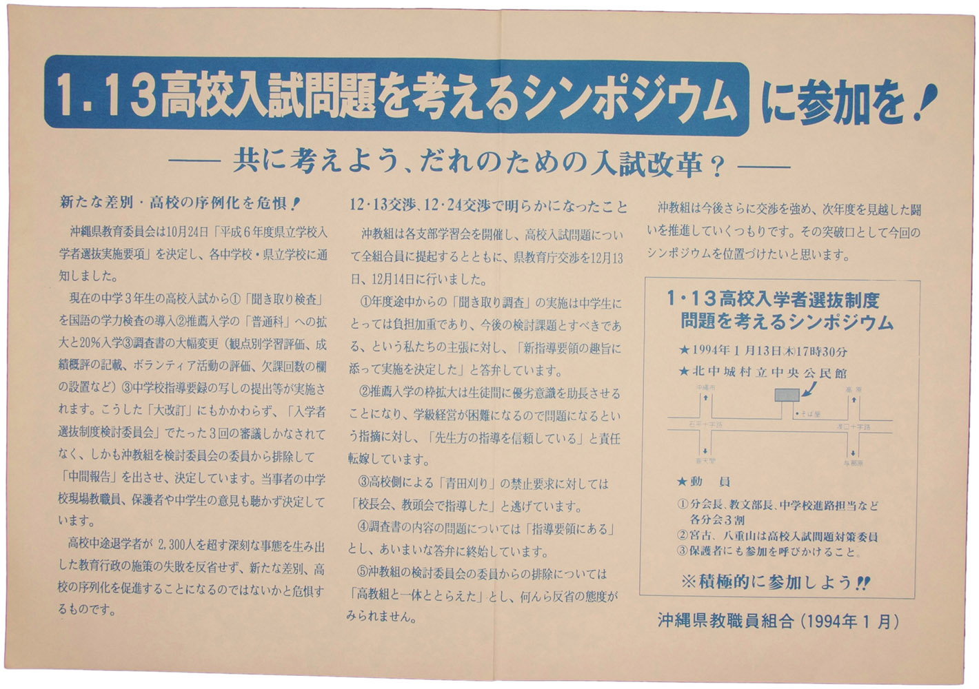 > 1.13高校入試問題を考える シンポジウムに参加を!
