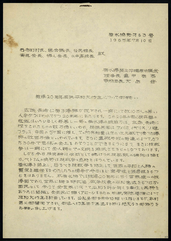 被爆20周年国民平和大行進について 御願い