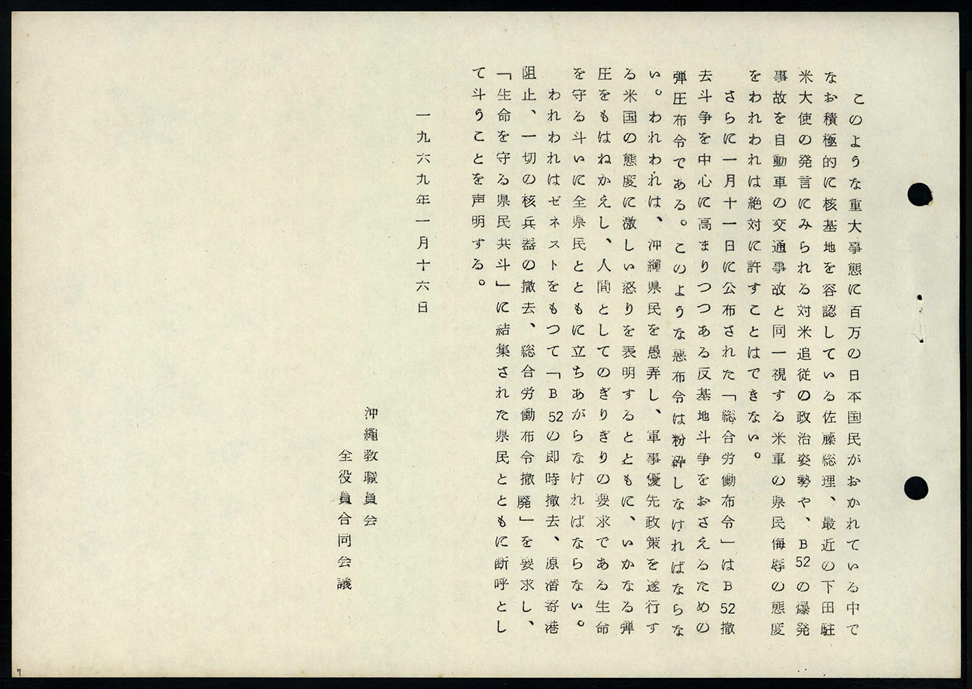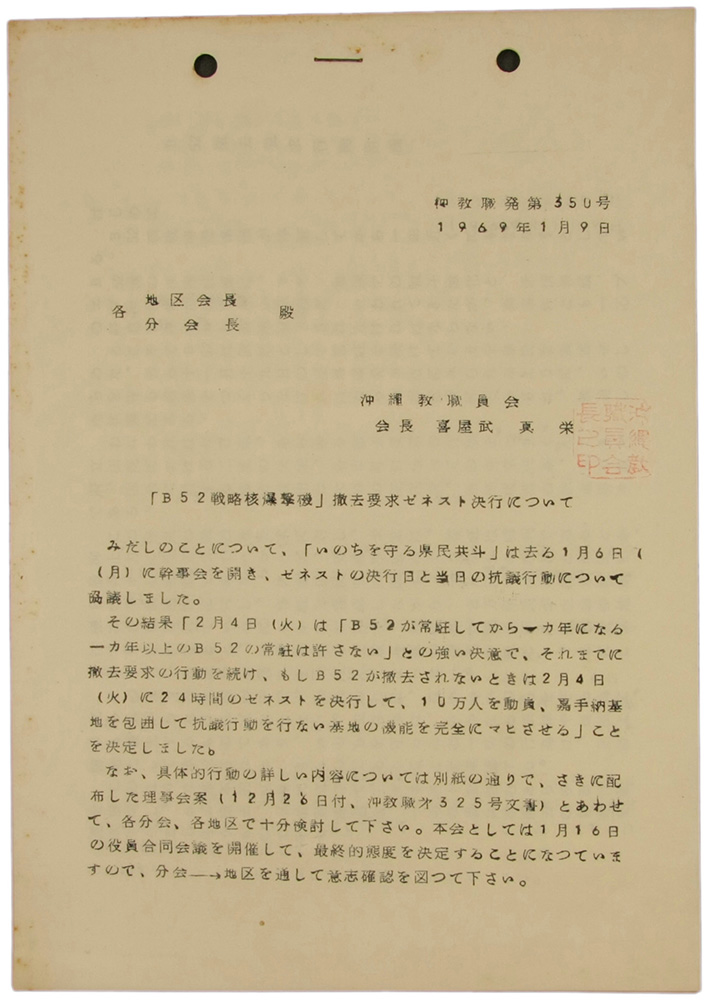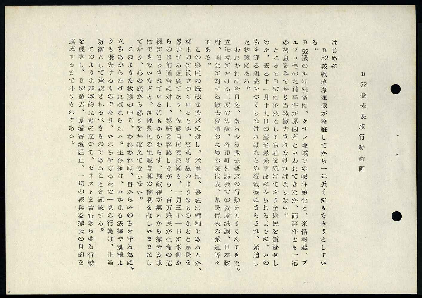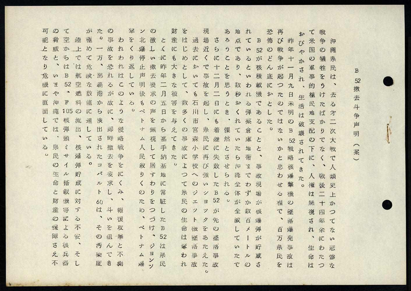 「B52戦略核爆撃機」撤去要求ゼネスト決行について
