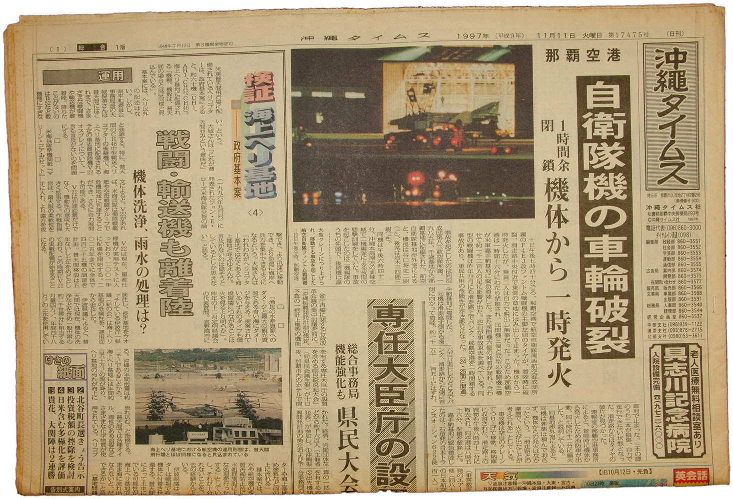 自衛隊機の車輪破裂他 沖縄タイムス日刊