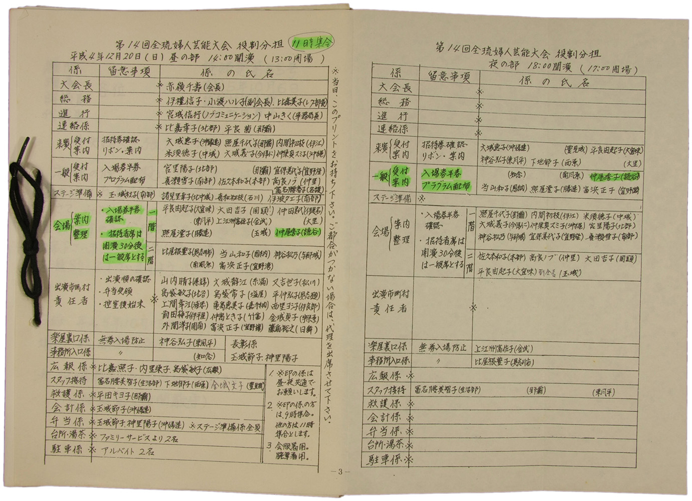 > 平成4年12月20日 第14回 全琉婦人芸能大会 役割分担