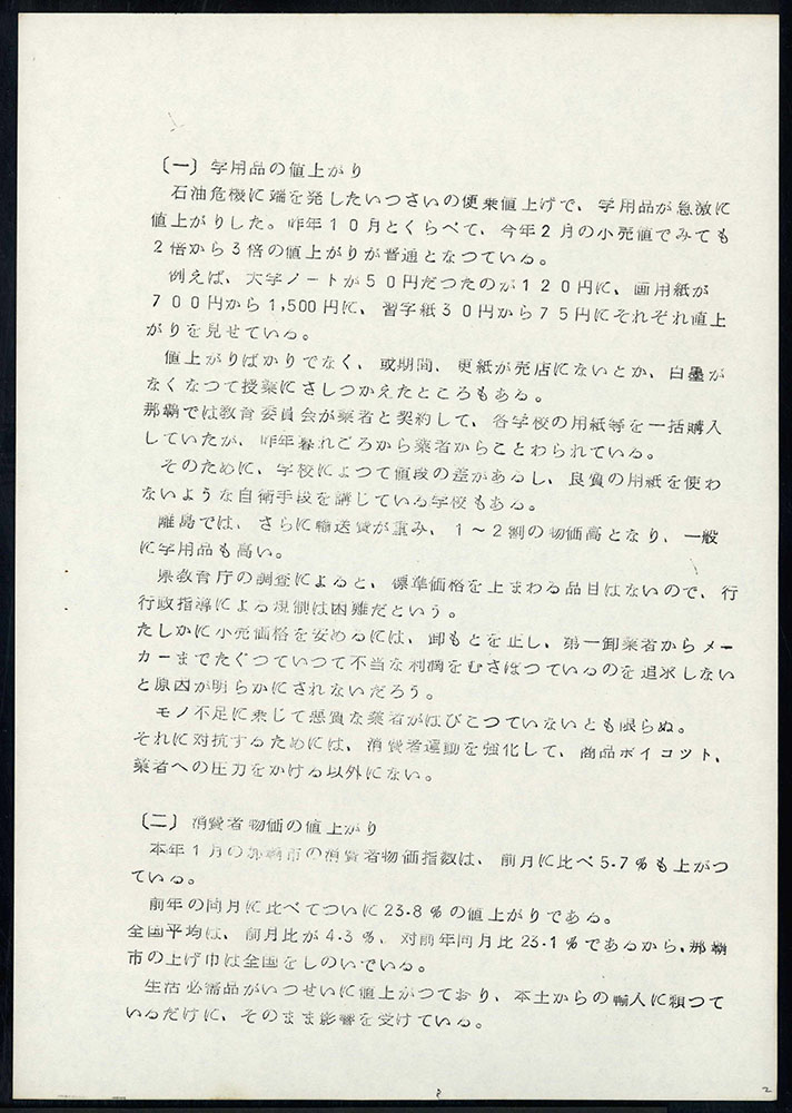 > 学用品、物価値上がり阻止対策