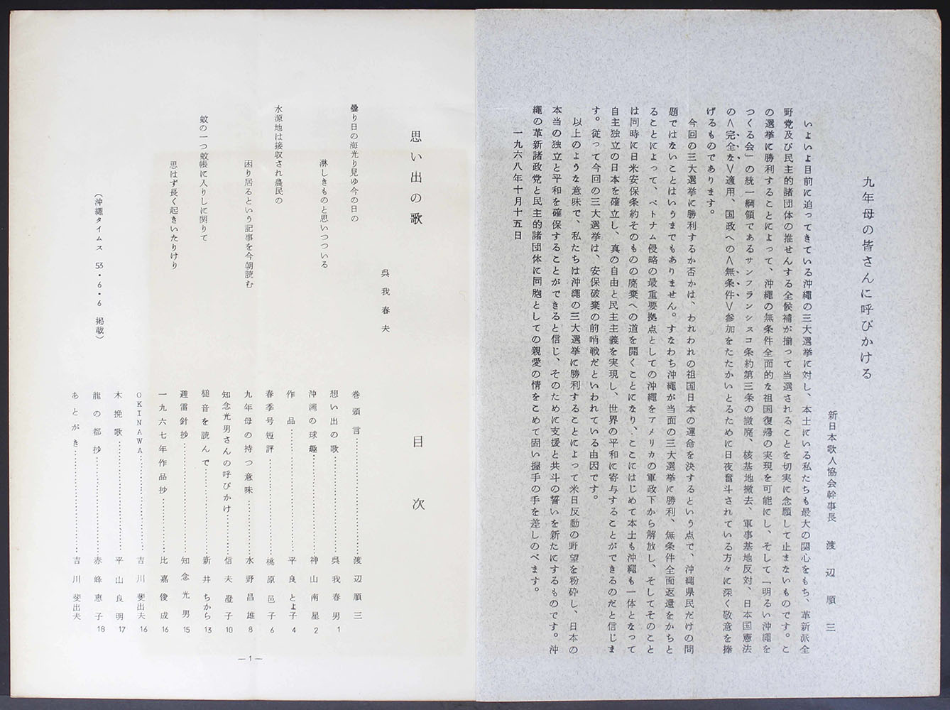 復帰関連資料のデータベースです。