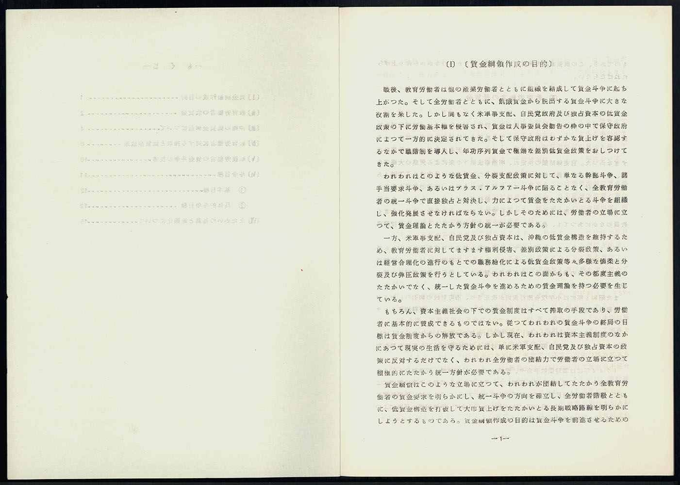 沖縄教職員会賃金綱領 第一次草案