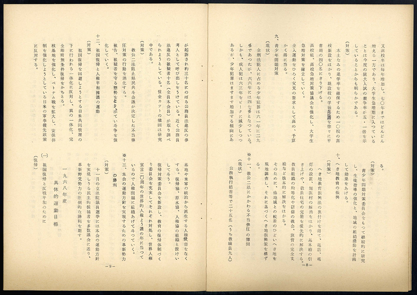 > 1968年度 運動方針(第一次草案)