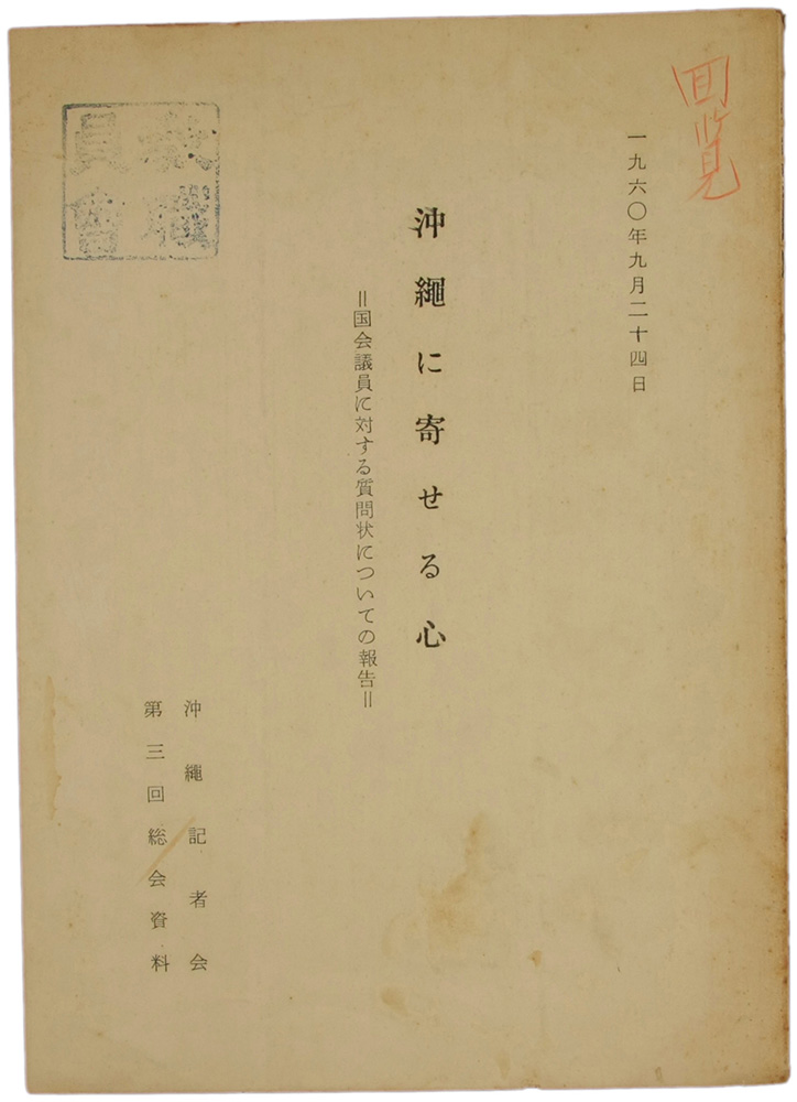 一九六〇年9月二十四日 沖縄に寄せる心