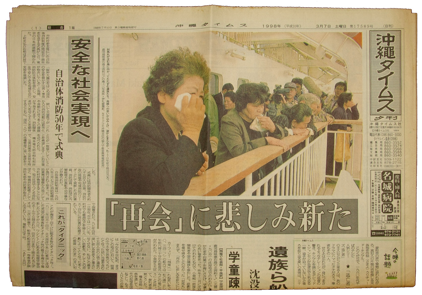沖縄タイムス 1998年3月7日 遺族ら船上から献花 沈没地点で初の慰霊祭