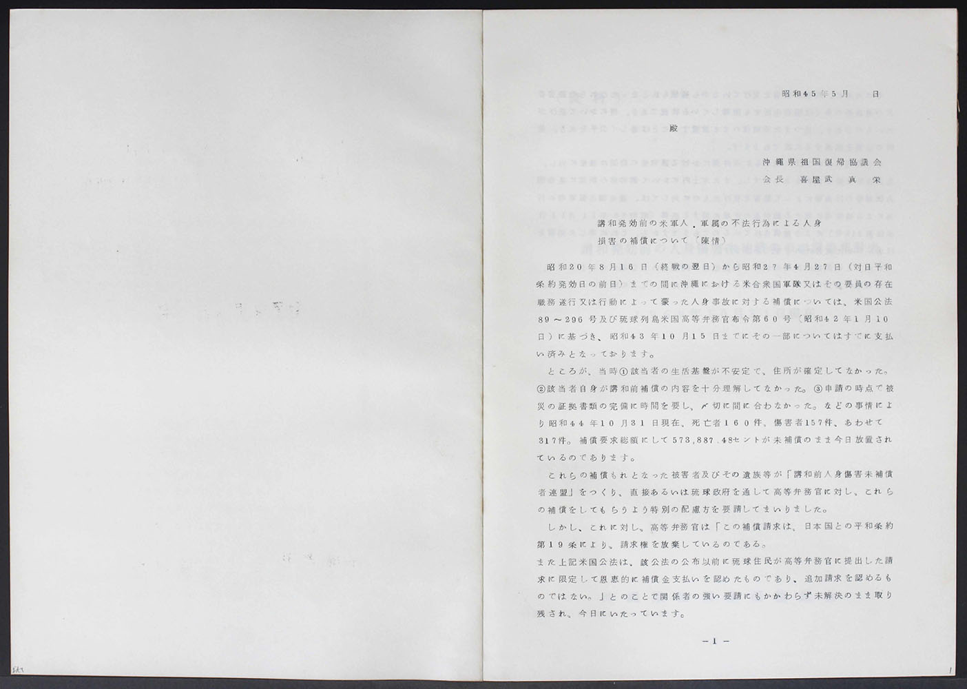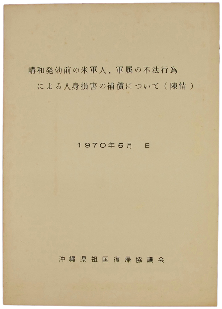 講和発効前の米軍人、軍属の不法行為による人身損害補償について(陳情) 1970年5月