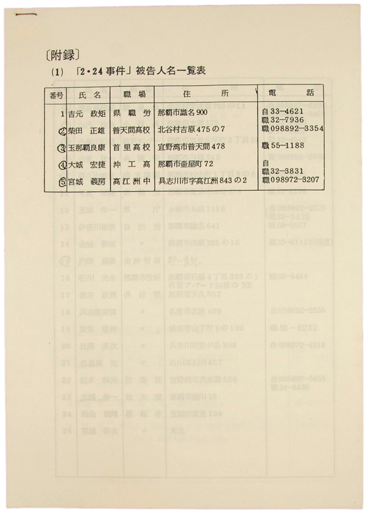 > 「2.24事件」被告人名一覧表