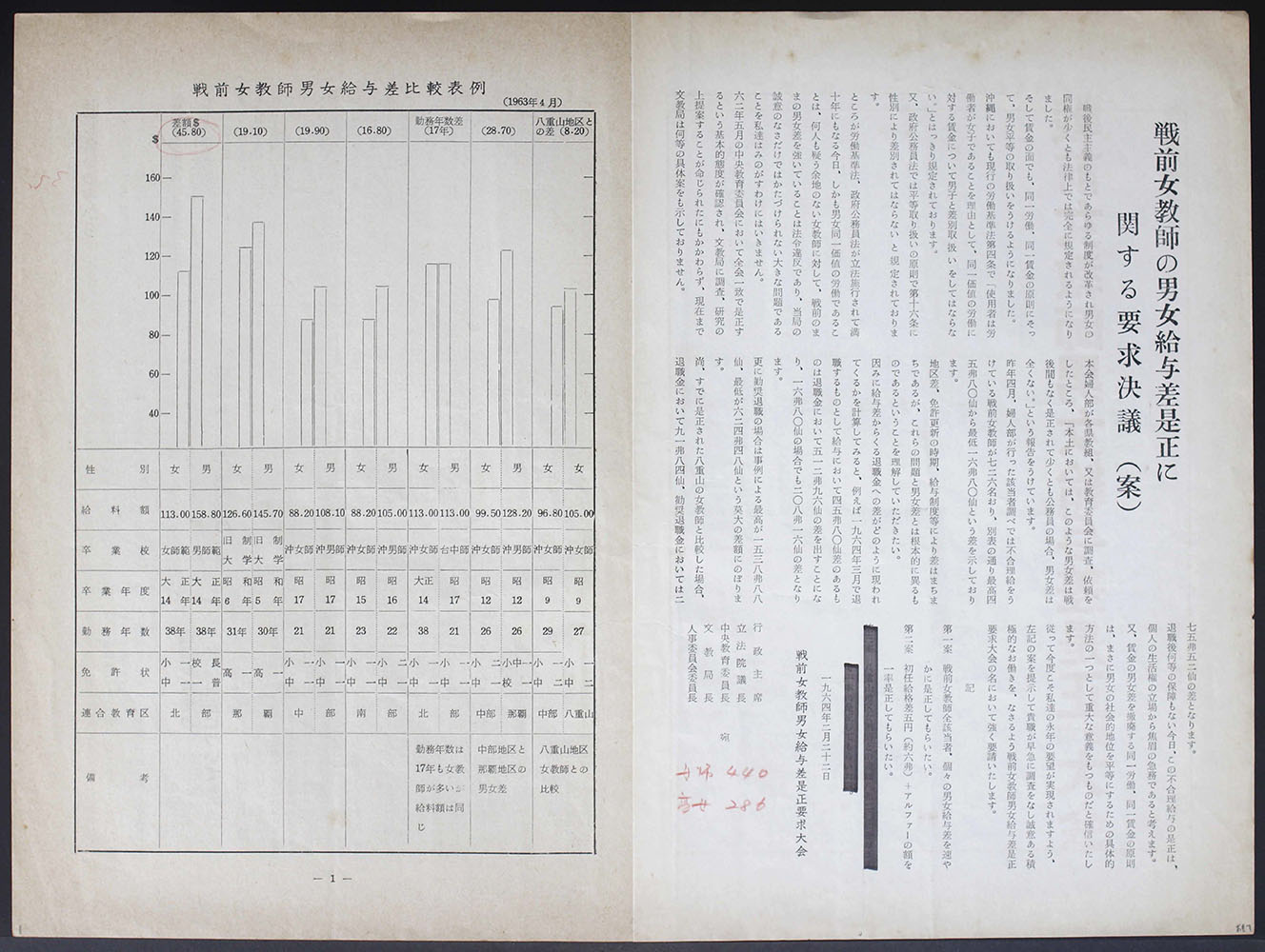 > 戦前女教師男女給与差是正要求大会
